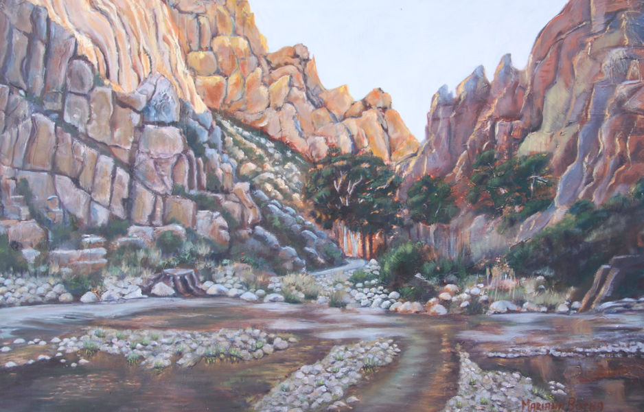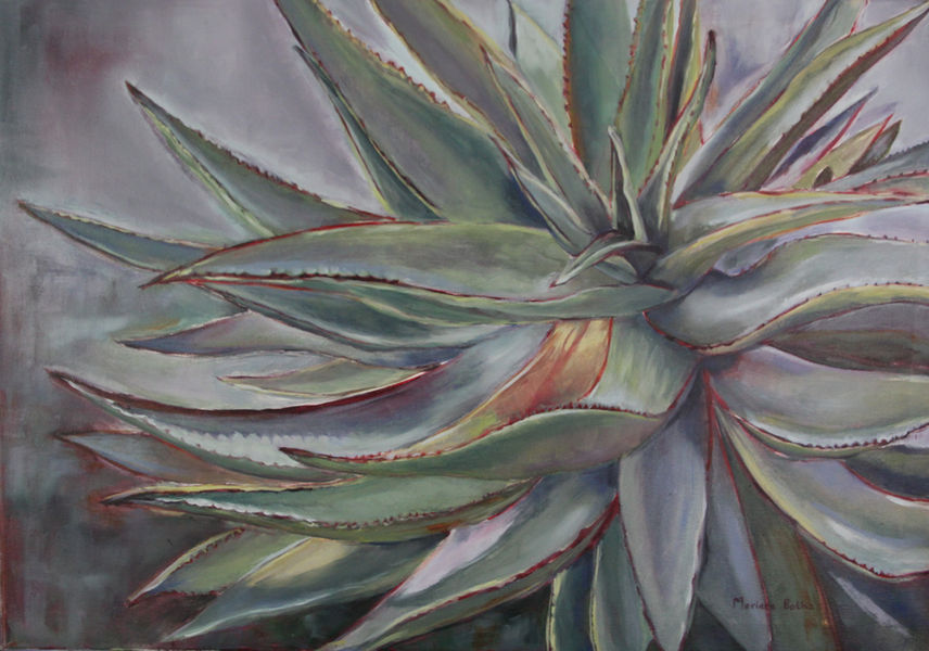 I include under Landscapes my paintings of succulents like the aloe and the quiver tree in their natural habitat as well as paintings where I paint flowers and/or any plant in an enlarged format. Capturing the beauty of flowers or any plant in an enlarged format where depth of field and three-dimensional effects is created stay a challenge. And again, to paint succulents like the aloe and the quiver trees with their aloof like postures and simple lines intrigue me and give me endless pleasure.
